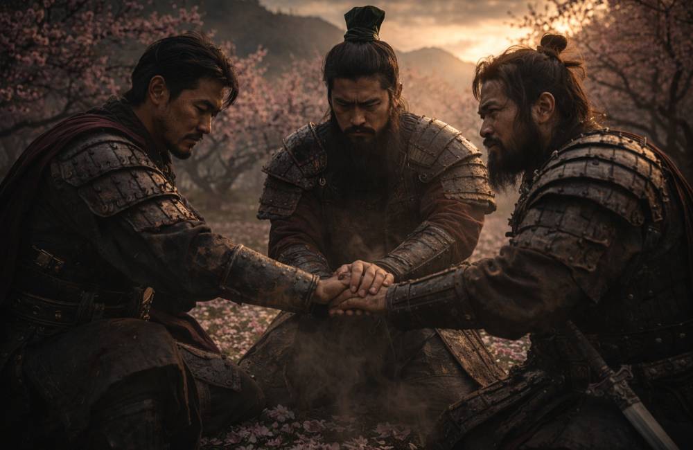 Dans les récits historiques, cette reconnaissance prend parfois une forme radicale. Le serment du Jardin des Pêchers, où Liu Bei, Guan Yu et Zhang Fei jurent fidélité jusqu’à la mort, place l’amitié au niveau du sacré. Plus forte que les liens du sang, plus durable que les alliances de circonstance. L’ami devient alors une responsabilité éthique : on lui doit présence, action, sacrifice s’il le faut.